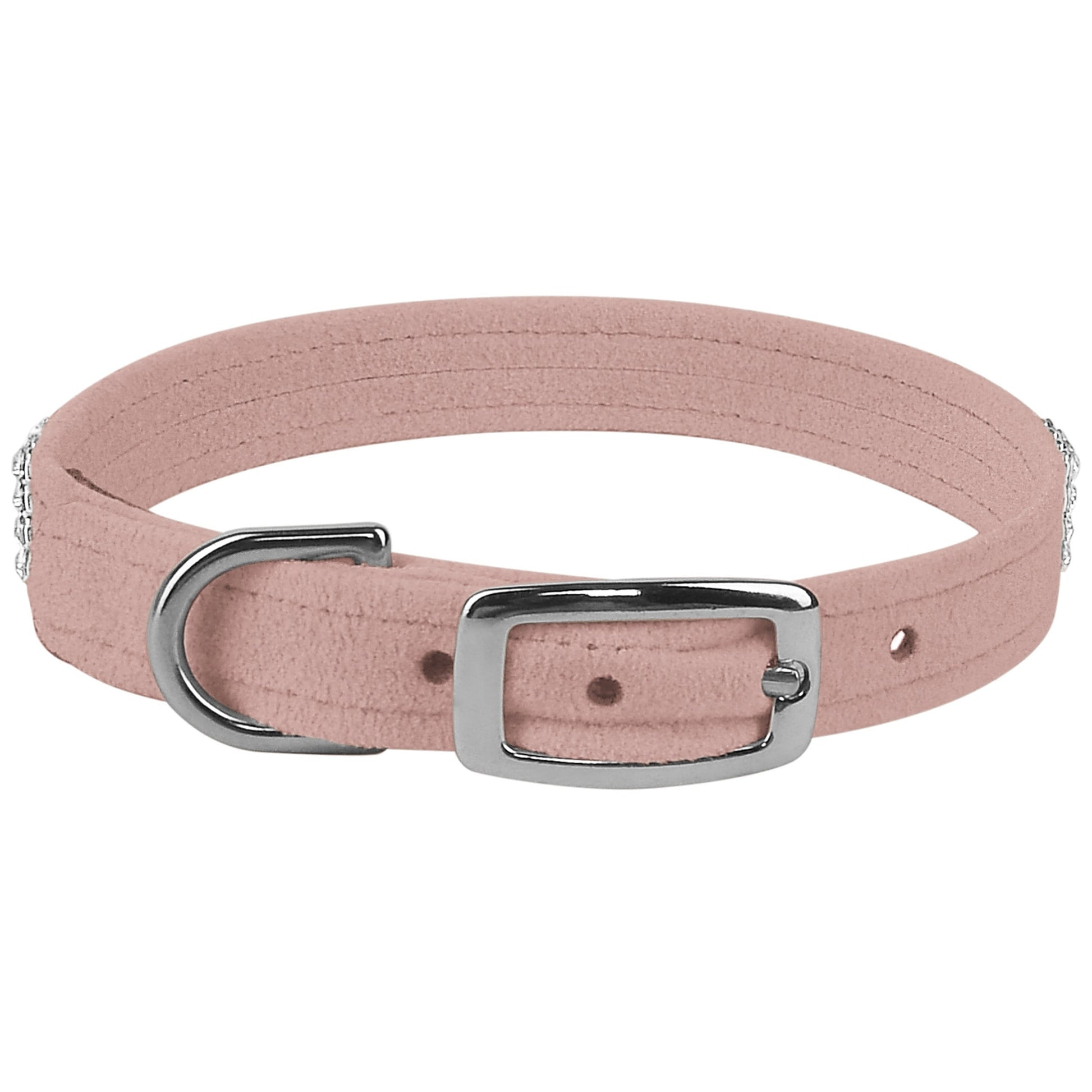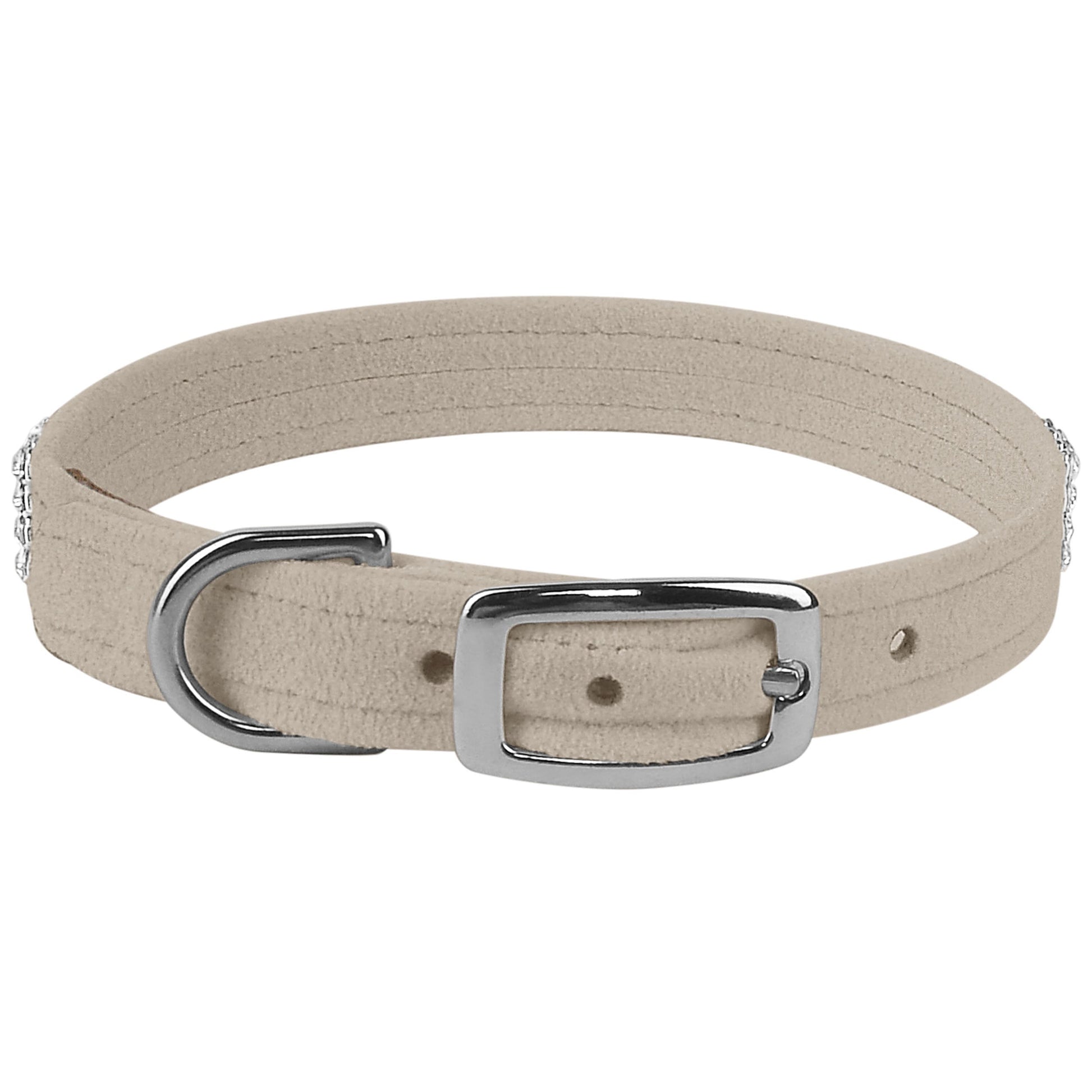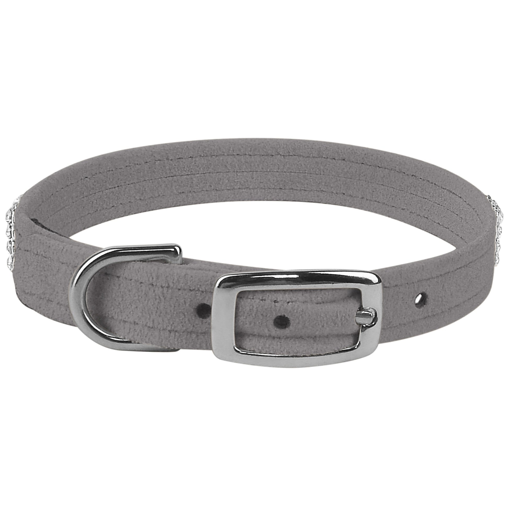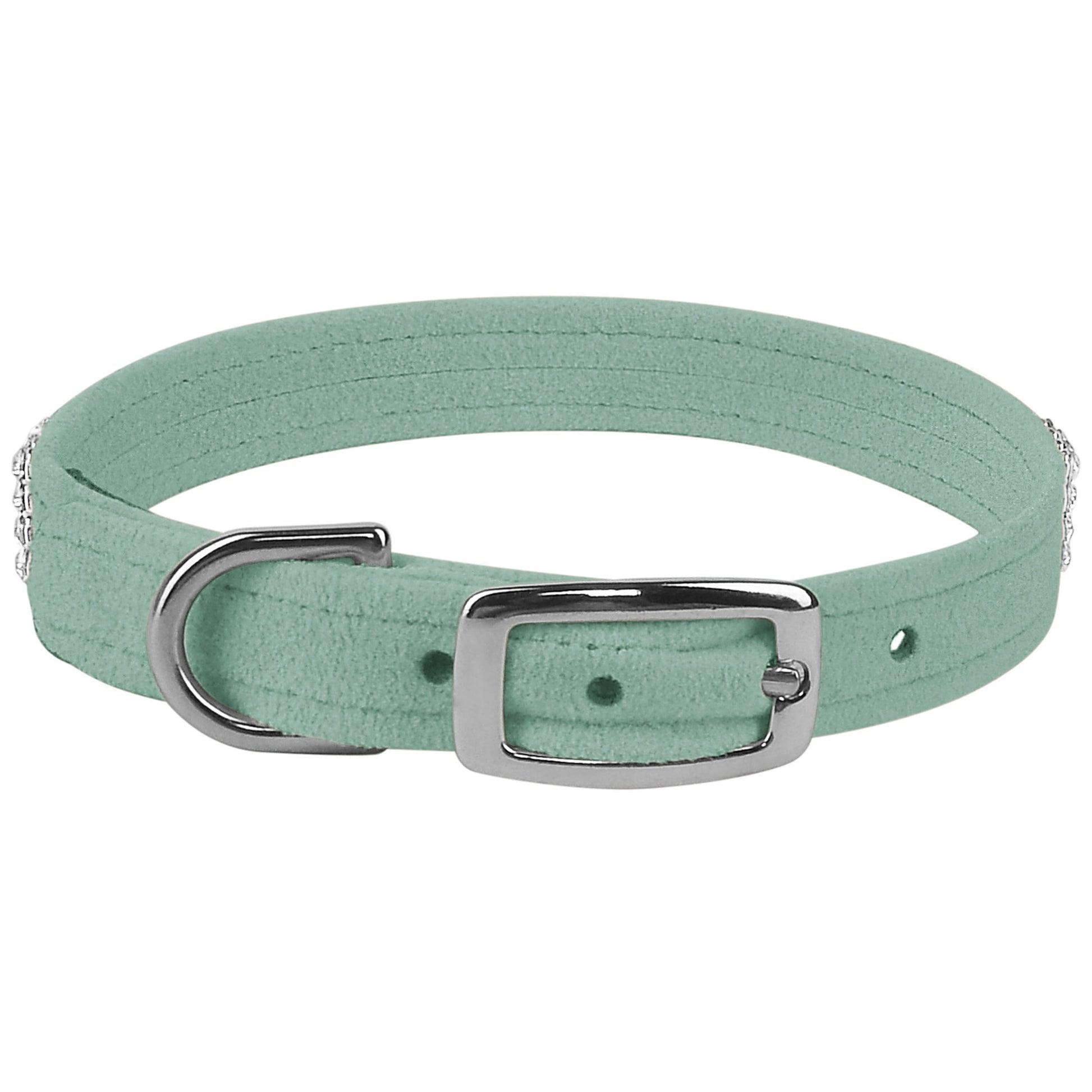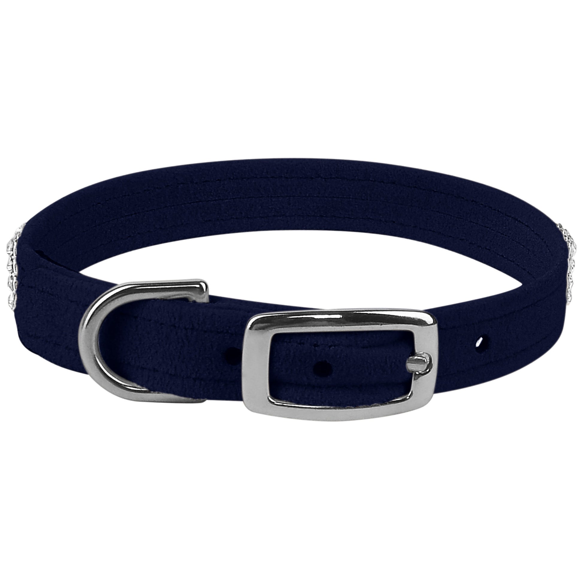 This dog collar has a premium look and feel, while being easy for you to maintain. Made from Ultrasuede® fabric with the soft texture and feel of premium suede. Ultrasuede® offers the highest grade of durability, making this collar resistant to stains and discoloration. It is even machine washable! Collar width is ½”. We recommend your dog should always be walked with a harness. Our collars are designed for ID tags, charms and for decoration, they are NOT designed for pulling dogs. Manufactured in the USA.