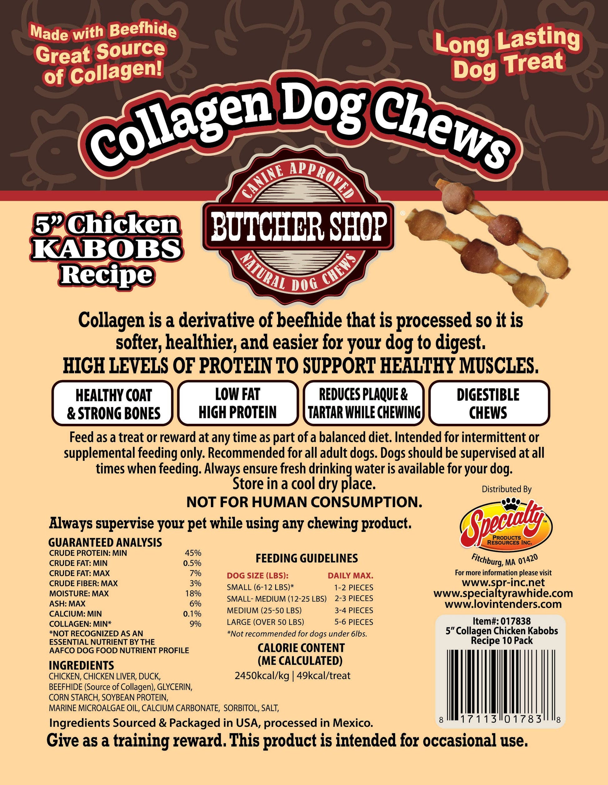 Butcher Shop Collagen Dog Chews 5" Chicken Kabobs 10-Pk