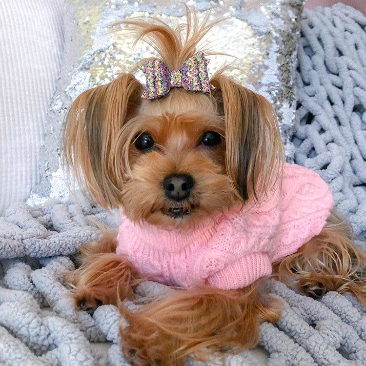 Keep your pup warm in this soft cable knit sweater. The blush pink dog sweater offers stylish warmth with a comfortable fit, ideal for chilly walks. This blush pink cable knit dog sweater is perfect for keeping your furry friend warm and stylish. Crafted from high-quality knit fabric, it provides soft warmth while ensuring a comfortable fit. The classic cable knit design adds elegance, making it great for winter walks or indoor lounging. This cozy pet sweater is available in multiple sizes, perfect for small to medium dogs. It’s a must-have for any fashionable pup!