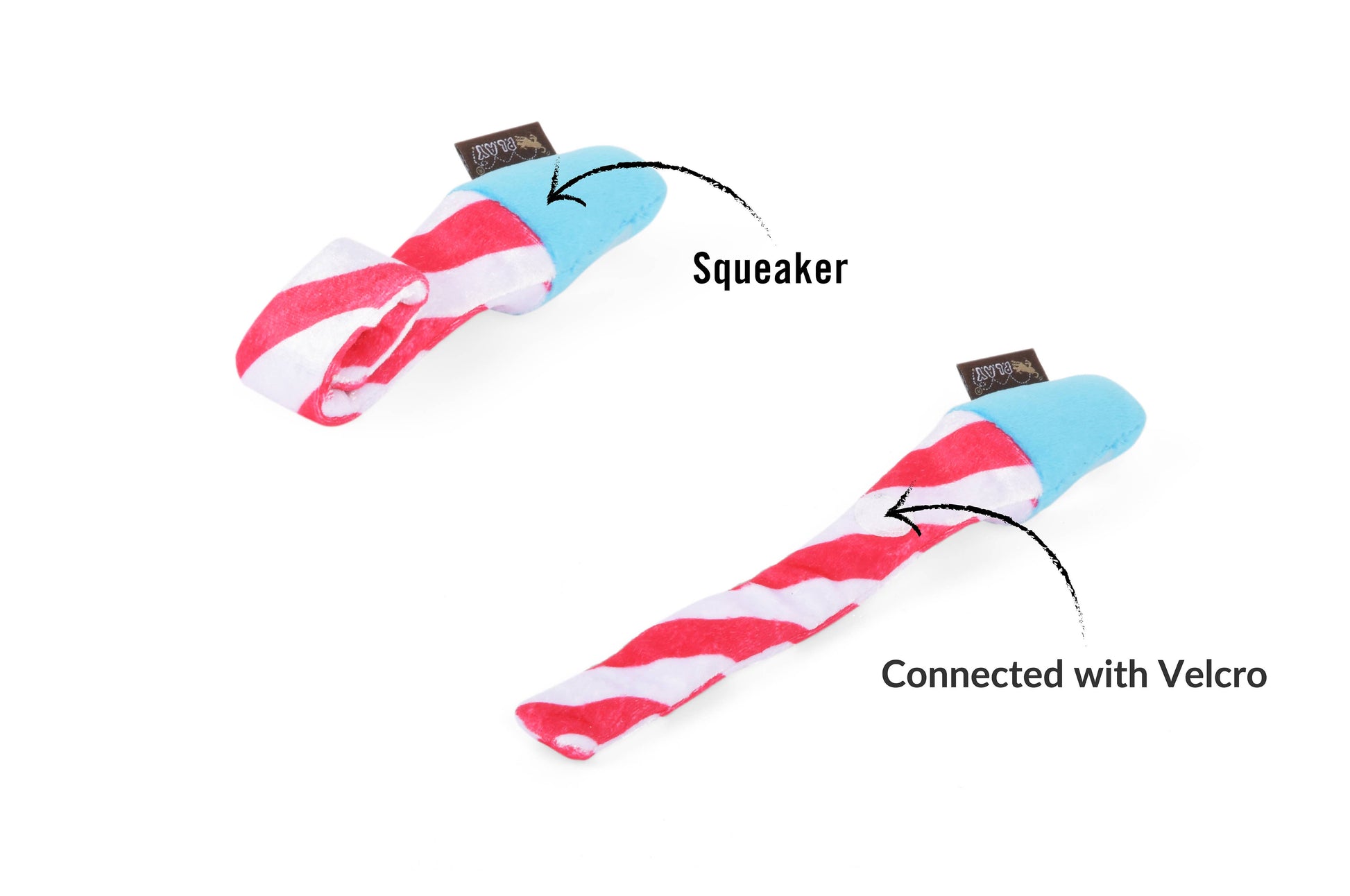 Amp up the celebration with P.L.A.Y.'s Party Time Mini Raise the Woof Party Horn toy! Designed for tiny pups, this extra small toy includes a squeaker at the top for extra excitement and a detachable horn that rolls out just like the real thing. It's the perfect mini accessory to raise the woof at every party!