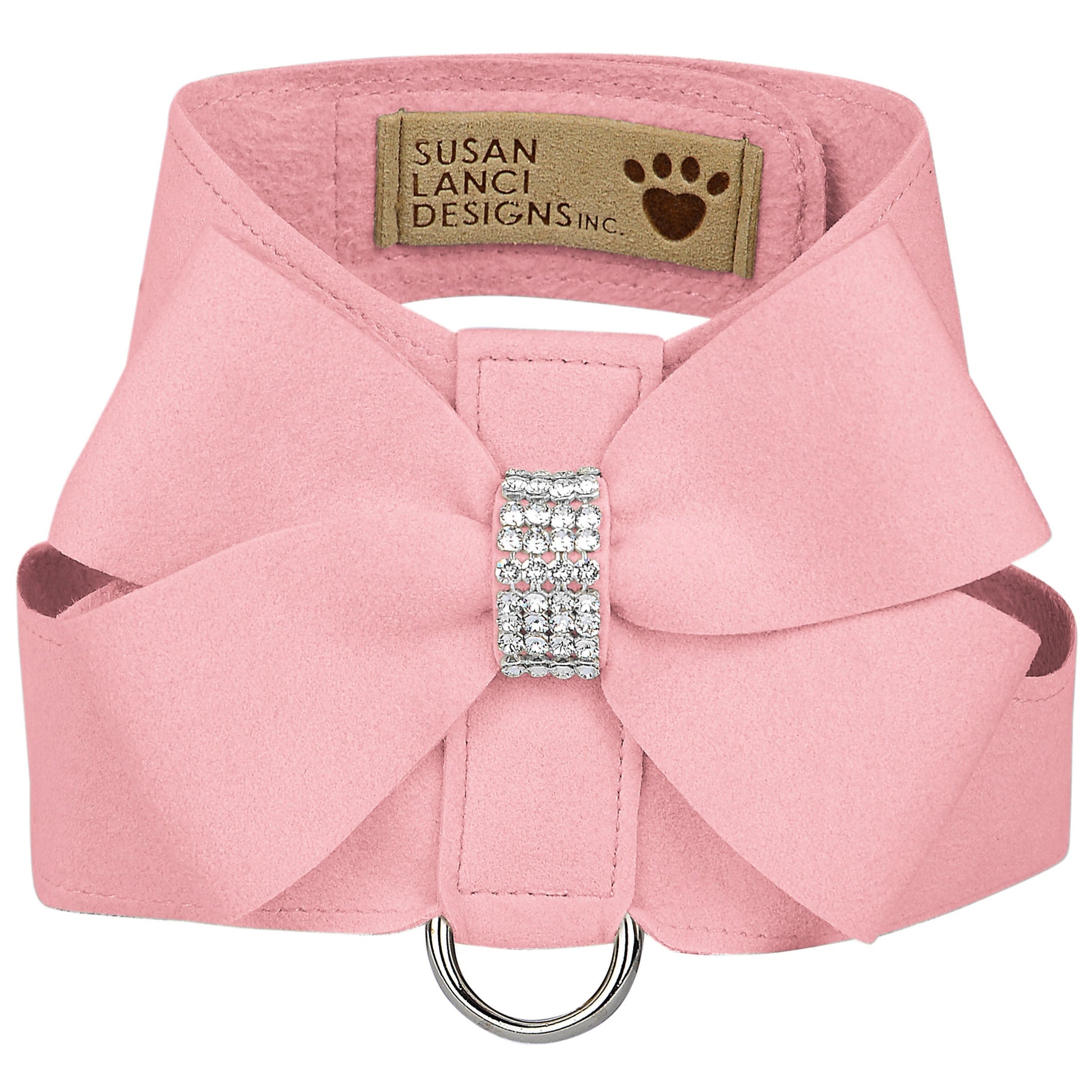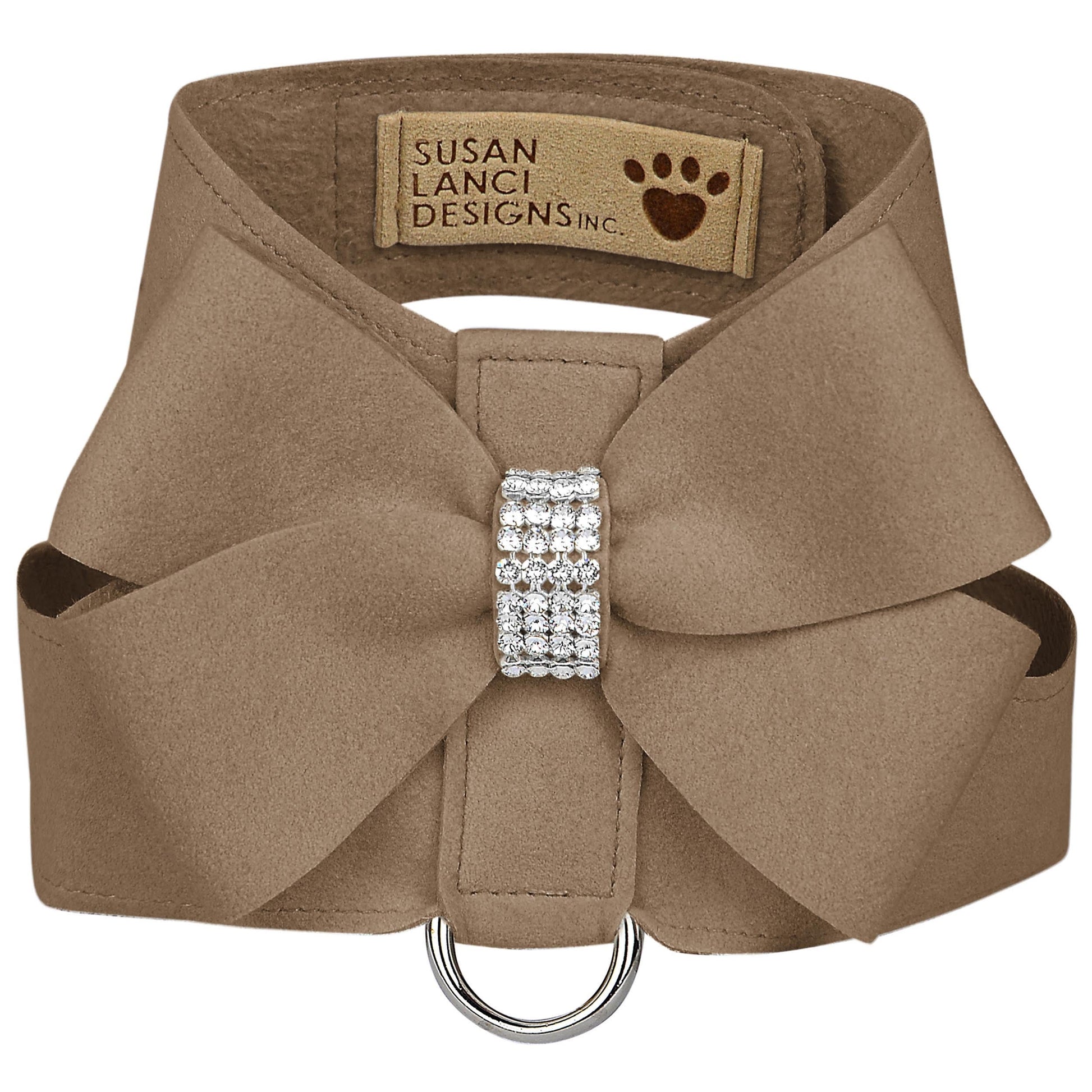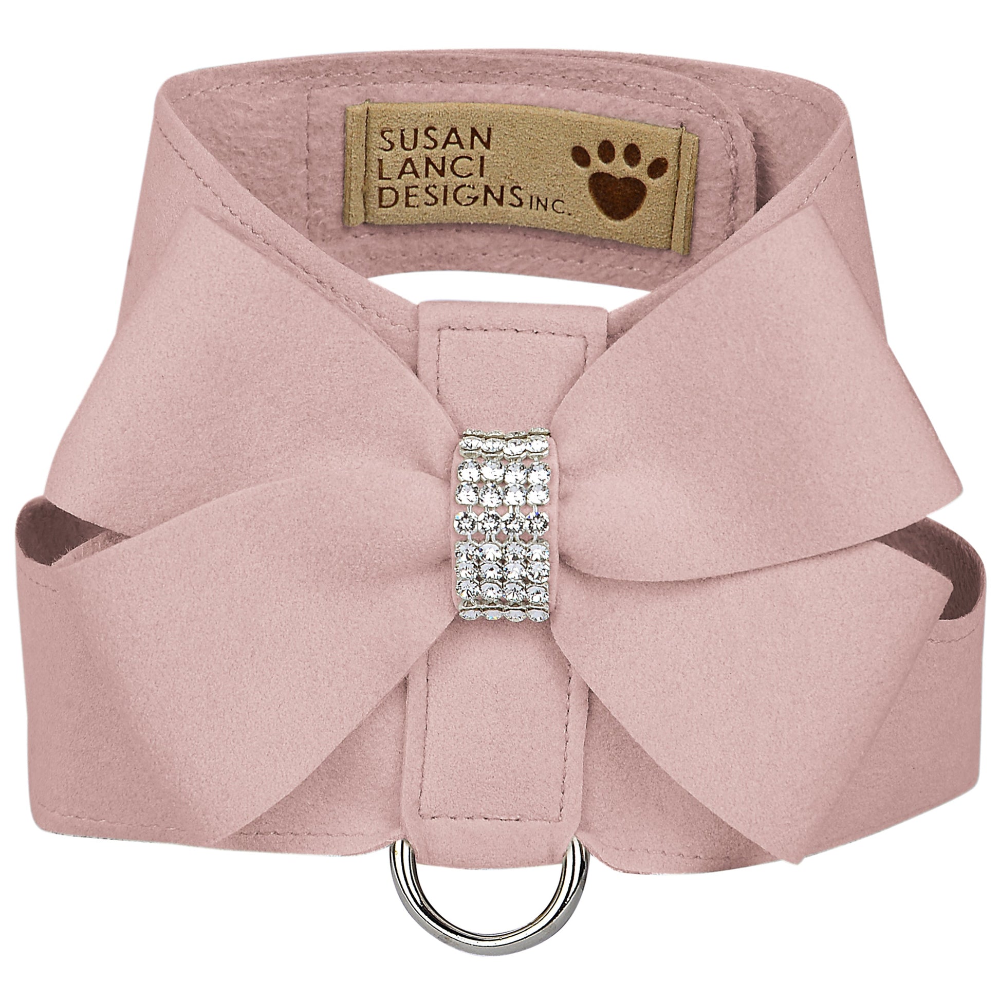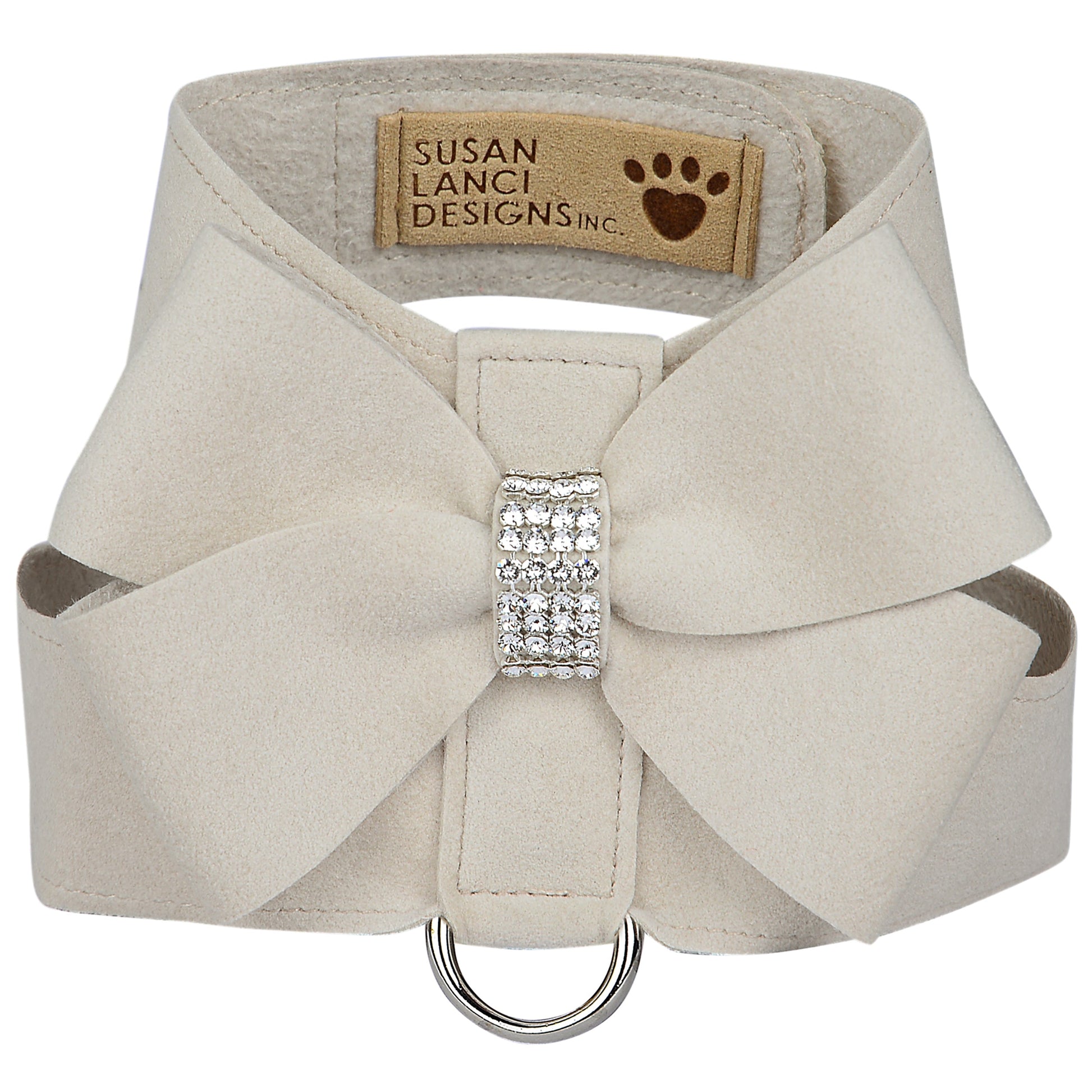 The Tinkie Dog Harness has an elegant design that offers a glamorous look while being comfortable for your dog and easy for you to maintain. Made from Ultrasuede® fabric with the soft texture and feel of premium suede. Ultrasuede® also has the highest grade of durability, making this harness resistant to stains and discoloration, it is even machine washable! Any pulling is across the shoulders and not the neck, resulting in pure comfort for your dog. Hook-and-loop closures make for a no-fuss, secure fit. Handcrafted to order in Sunny San Diego, California, USA.