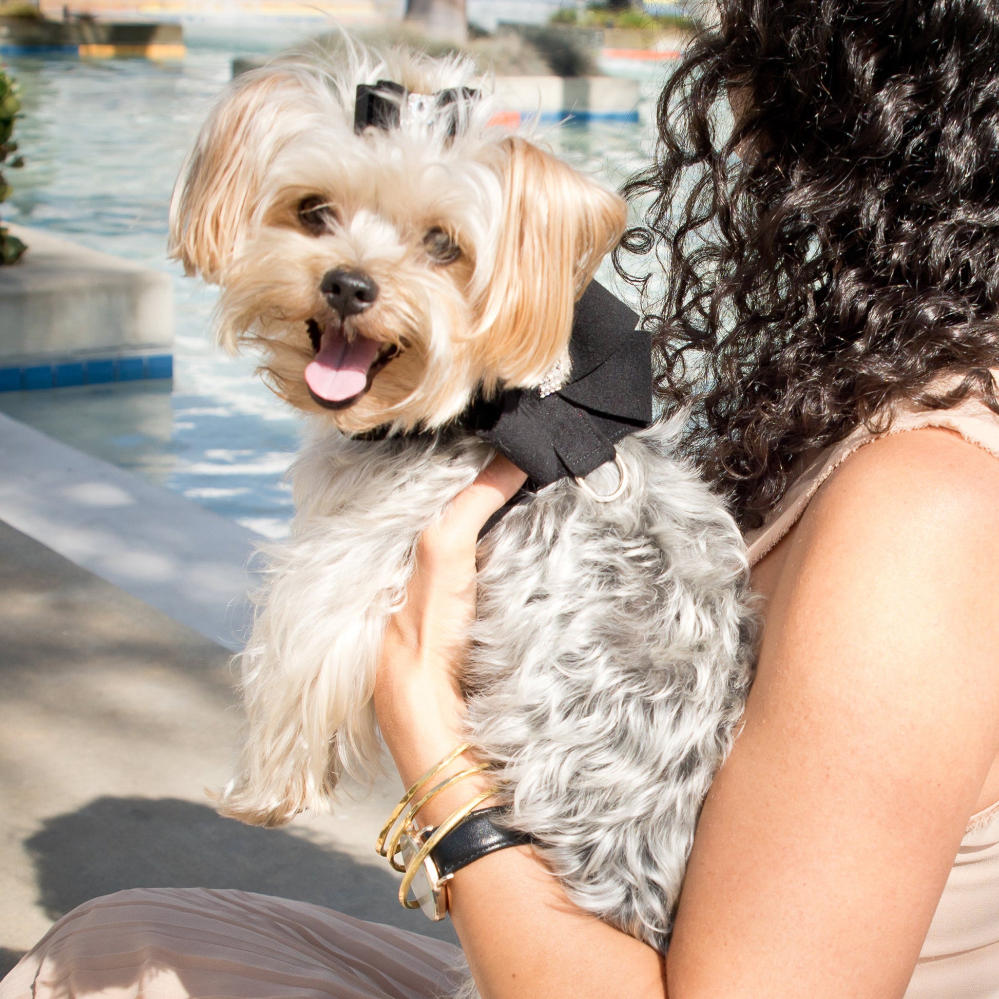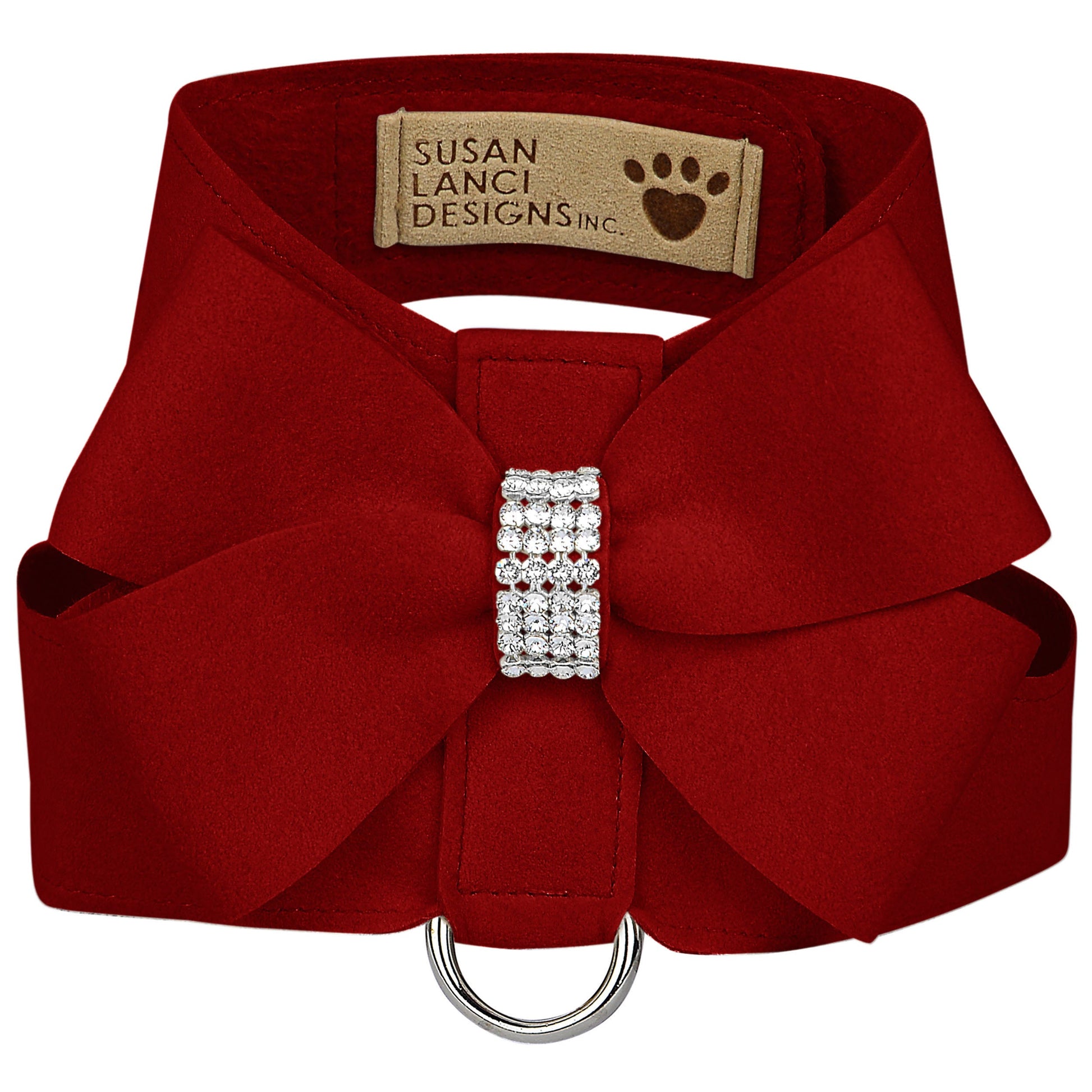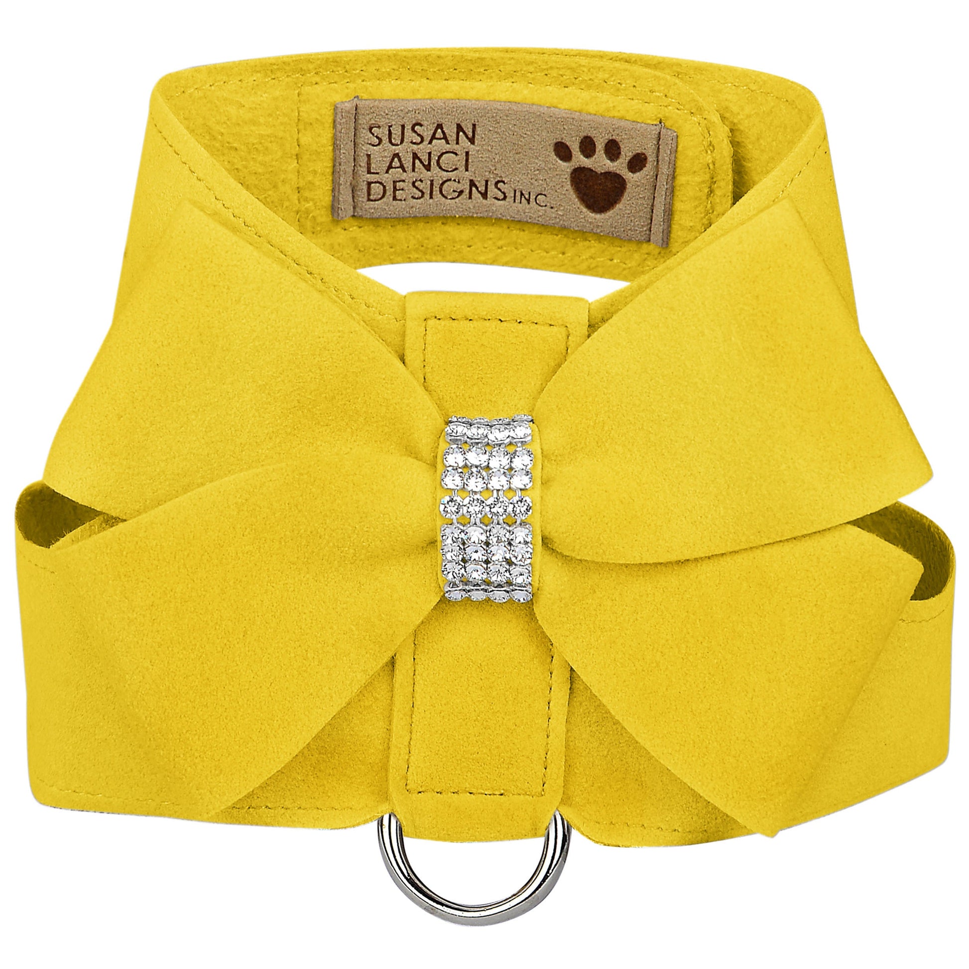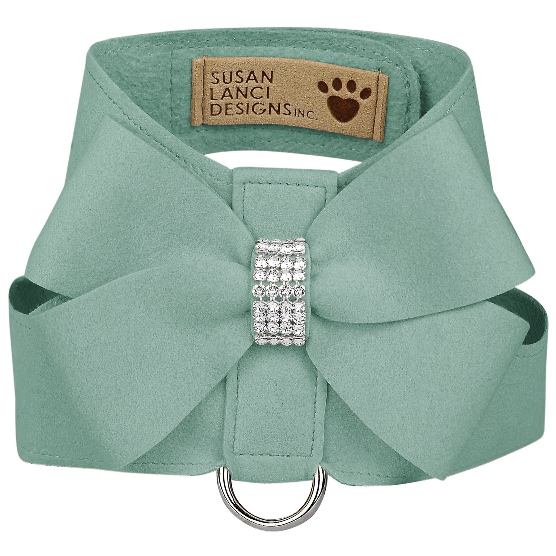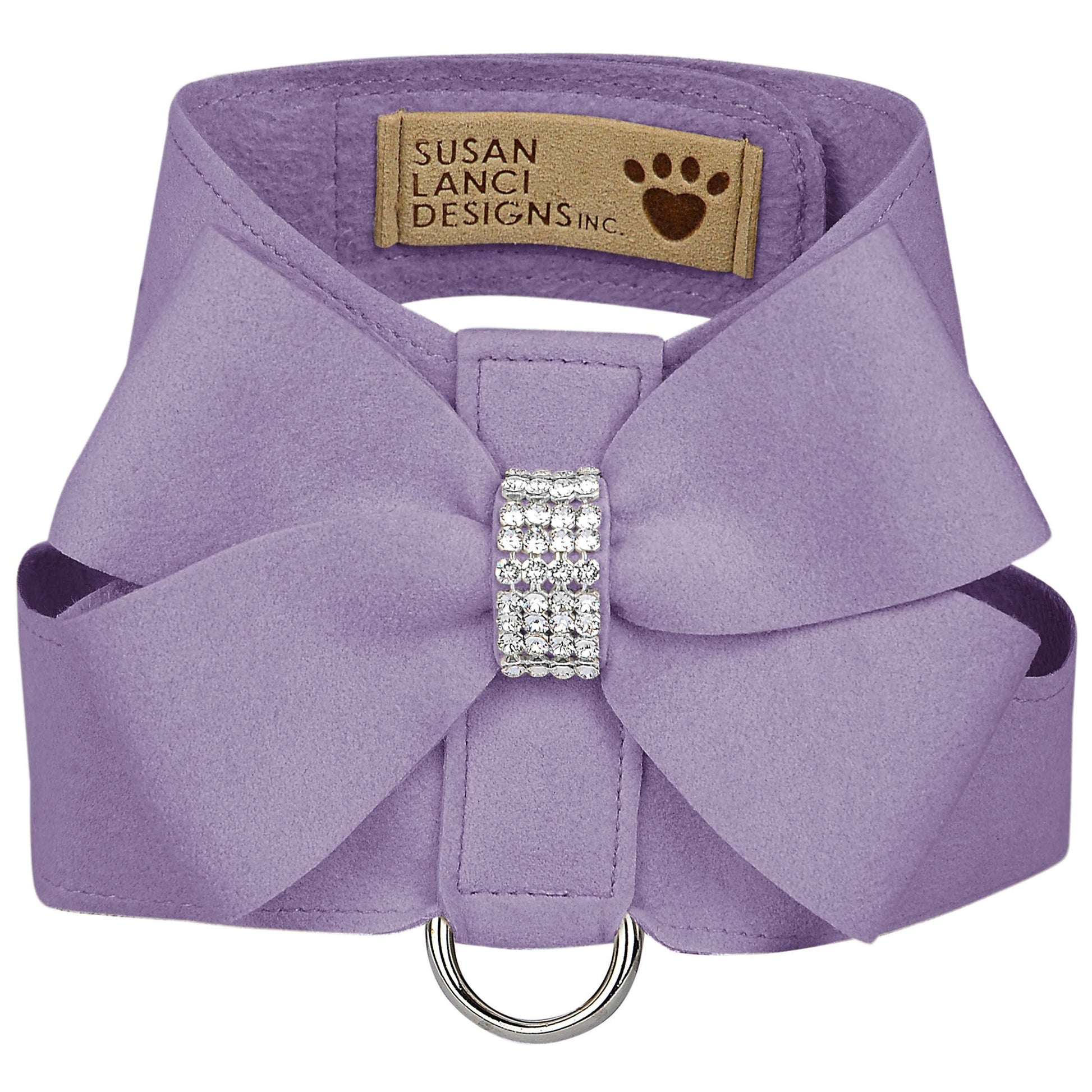 The Tinkie Dog Harness has an elegant design that offers a glamorous look while being comfortable for your dog and easy for you to maintain. Made from Ultrasuede® fabric with the soft texture and feel of premium suede. Ultrasuede® also has the highest grade of durability, making this harness resistant to stains and discoloration, it is even machine washable! Any pulling is across the shoulders and not the neck, resulting in pure comfort for your dog. Hook-and-loop closures make for a no-fuss, secure fit. Handcrafted to order in Sunny San Diego, California, USA.