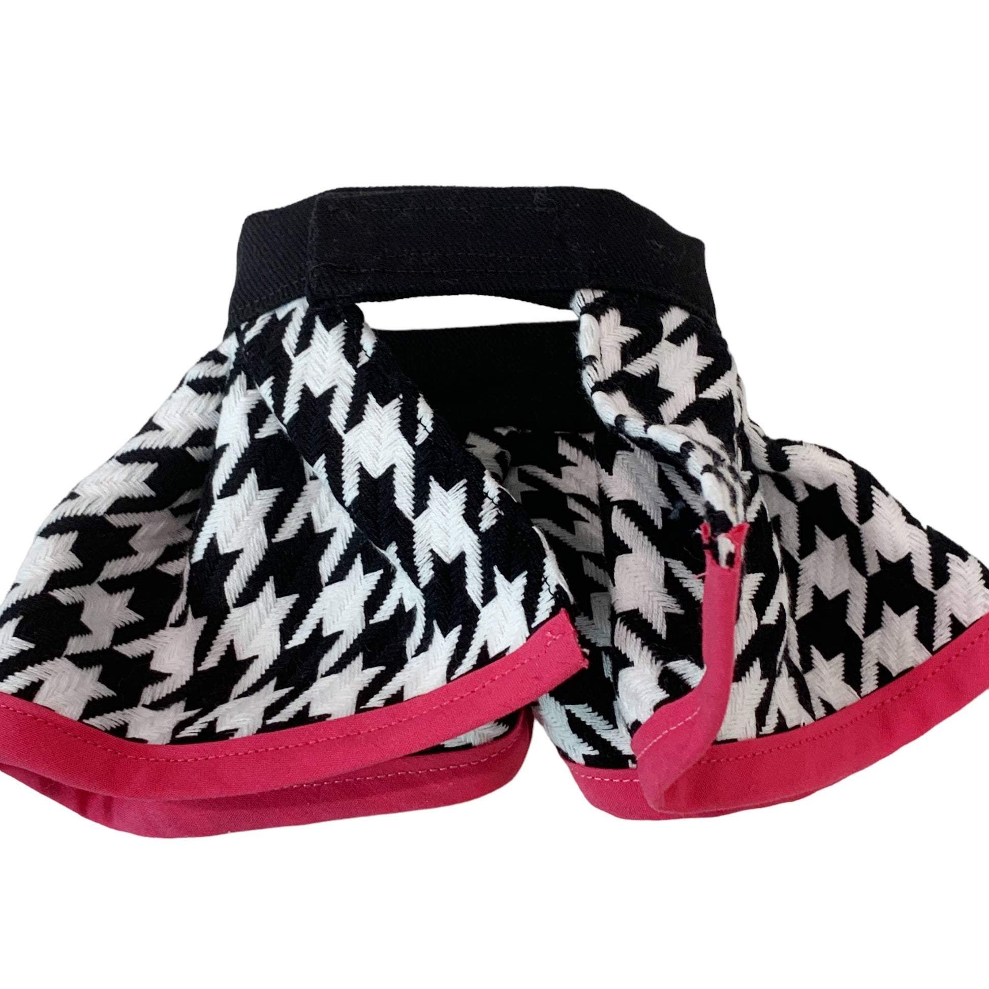 Finish off any girly look with the perfect houndstooth skirt! Waistband is made with black denim, and the hem is trimmed with pink fabric. All handmade with love in Los Angeles. Hook and loop closure for an easy fit. Please check the last photo for the size chart! The skirts need to fit tightly, so do not go up a size when ordering our skirts. Skirts will adjust larger than the size on the chart, but will not adjust smaller. These are made to order and take about four weeks to ship.