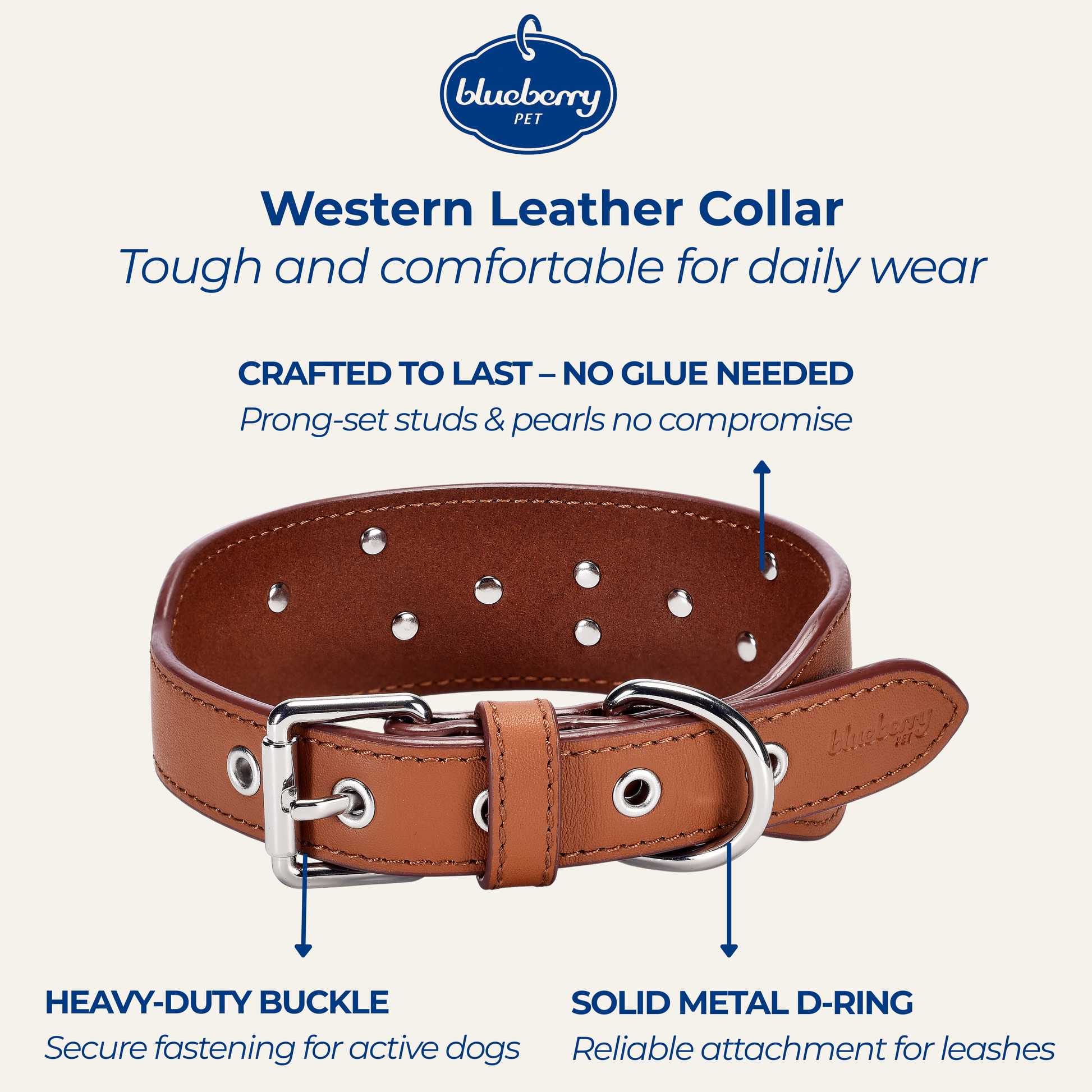 Tan/Brown Collar Western Style Premium Leather Collar - Western Style