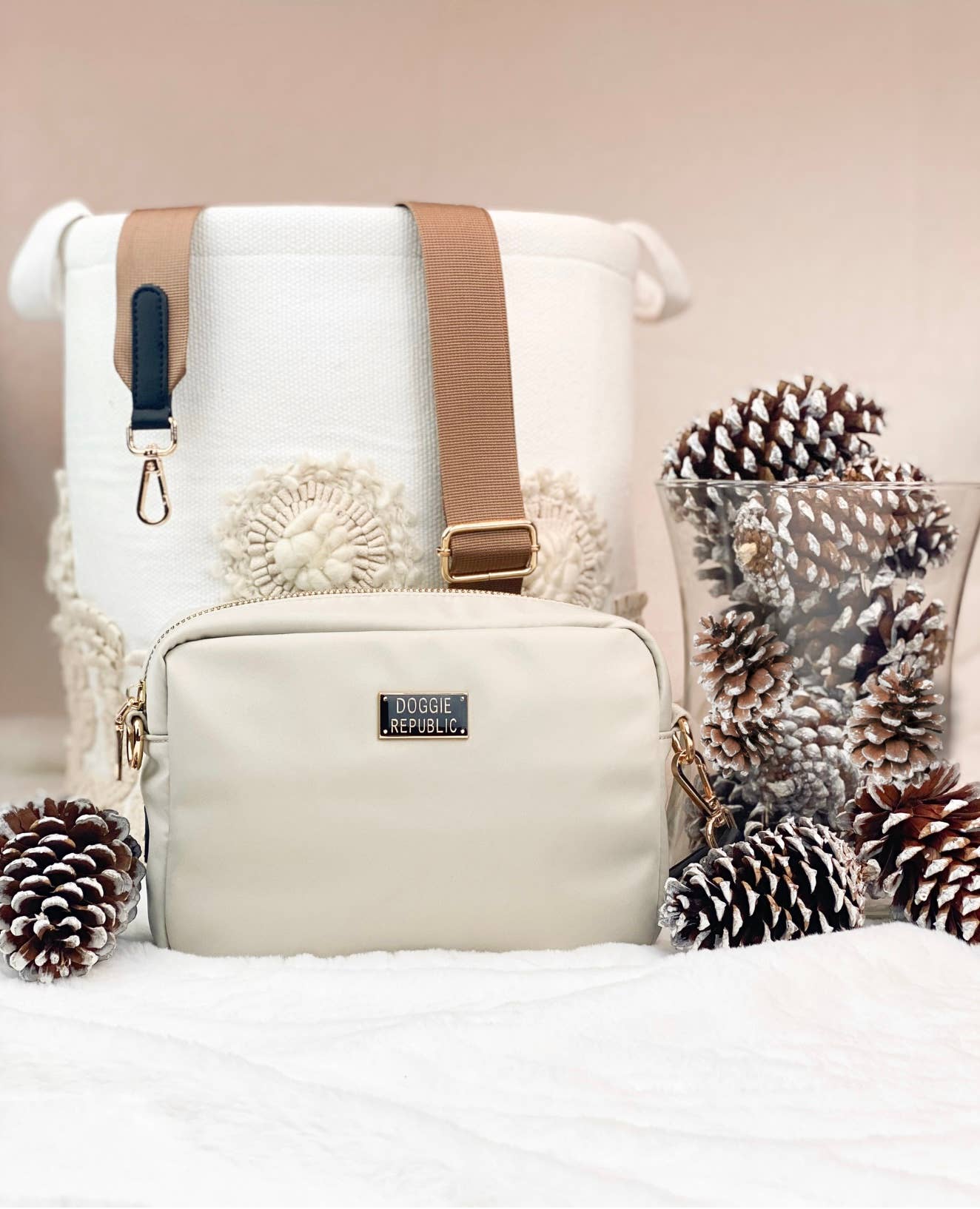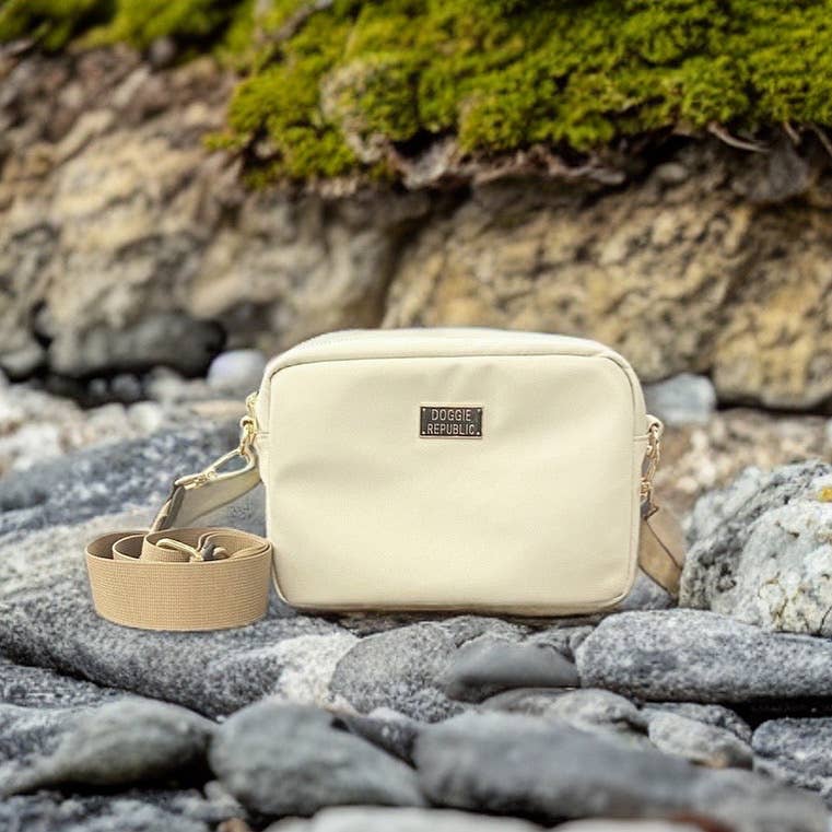 Our Latte Doggie Bag is the accessory every dog owner needs. Roomy enough to hold a roll of doggie waste bags, your keys, wallet, doggie water bottle and even a treat for your fur baby. It's a purse that holds everything you need for walkies all zipped up and ready to go whenever you are. The Doggie Bag is lightweight, durable and super comfortable to wear. It comes with a built in waste bag holder that has a convenient side access. Adjust the strap to make it fit exactly the way you prefer.
